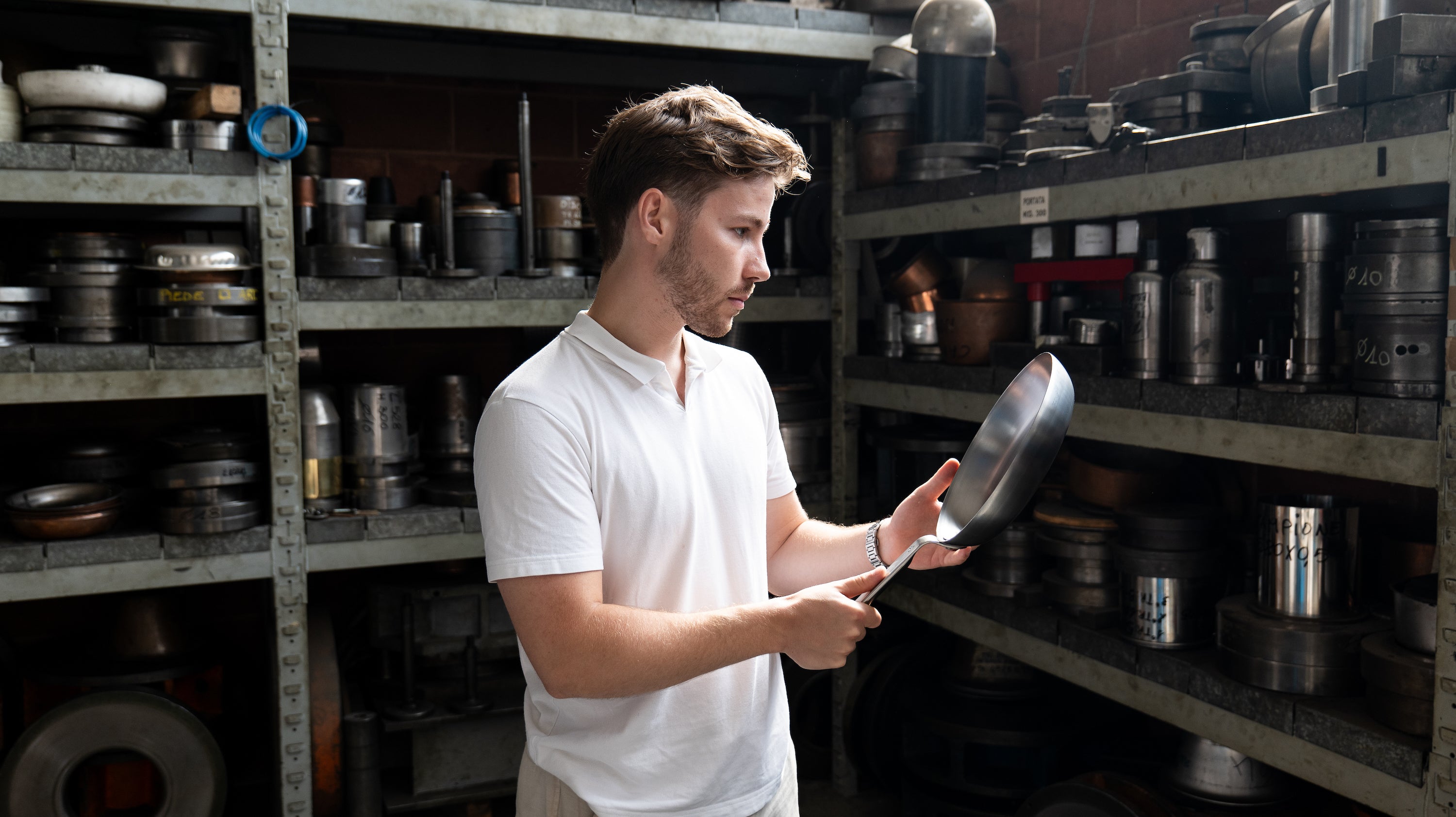 "Für mich waren die Gastrotools das erste Mal, dass ich etwas in der Hand hatte, das sich kraftvoll anfühlte. Es ist solide, aus rostfreiem Stahl, und hat keine abziehbare Beschichtung. Ich lege die Pfanne direkt ins Feuer - und es funktioniert. Das Gerät hält sowohl in der Profiküche als auch zu Hause. Es ist dafür gemacht, benutzt zu werden."