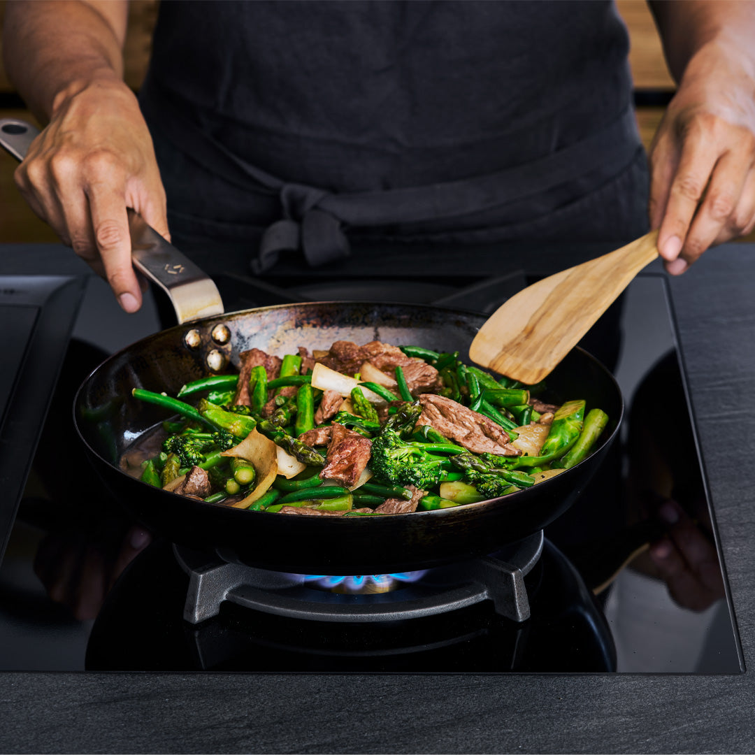 Erleben Sie das Beste der französischen Handwerkskunst mit diesem Set aus Utensilien in Olivenholz. Perfekt für eine Vielzahl von kulinarischen Aufgaben, vom Rühren bis zum Servieren. Jeder Löffel und Spatel ist handgeschnitzt, mit Bienenwachs behandelt und trägt die charakteristischen Eigenschaften von Olivenholz – dichte Fasern und natürliche antibakterielle Eigenschaften, die beim Kochen sowohl schön als auch hygienisch sind. Der Löffel eignet sich ideal zum Rühren und Mischen, während der Spatel Ihre Pfannen beim Braten von Gemüse, Fleisch und Fisch schützt. Hergestellt in Frankreich von einem Hersteller mit stolzen Handwerkstraditionen ist dieses Set darauf ausgelegt, ein Leben lang zu halten und Ihren Mahlzeiten einen Hauch von südfranzösischem Charme zu verleihen.