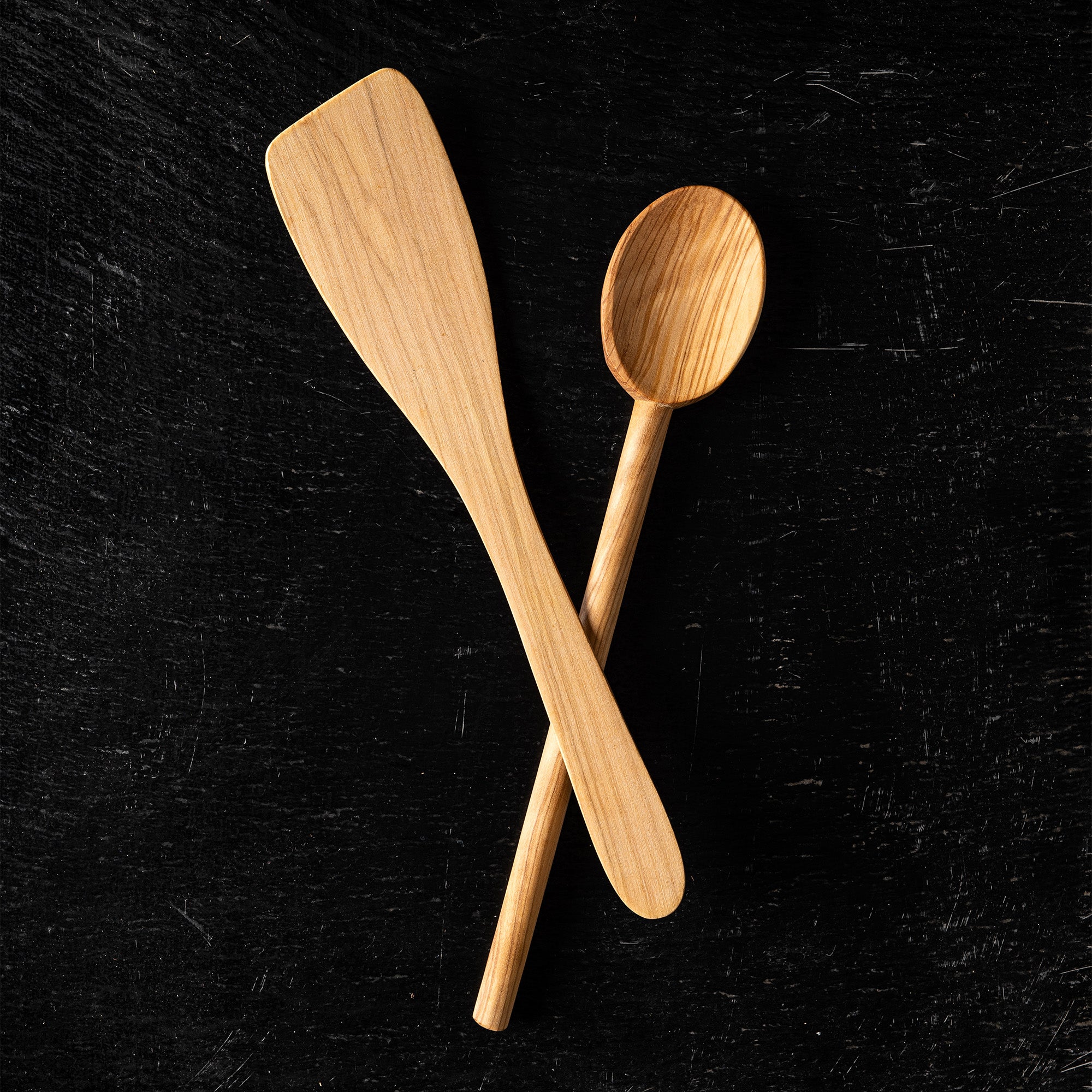Französische Handwerkskunst und Funktionalität: Löffel und Spatel aus Olivenholz