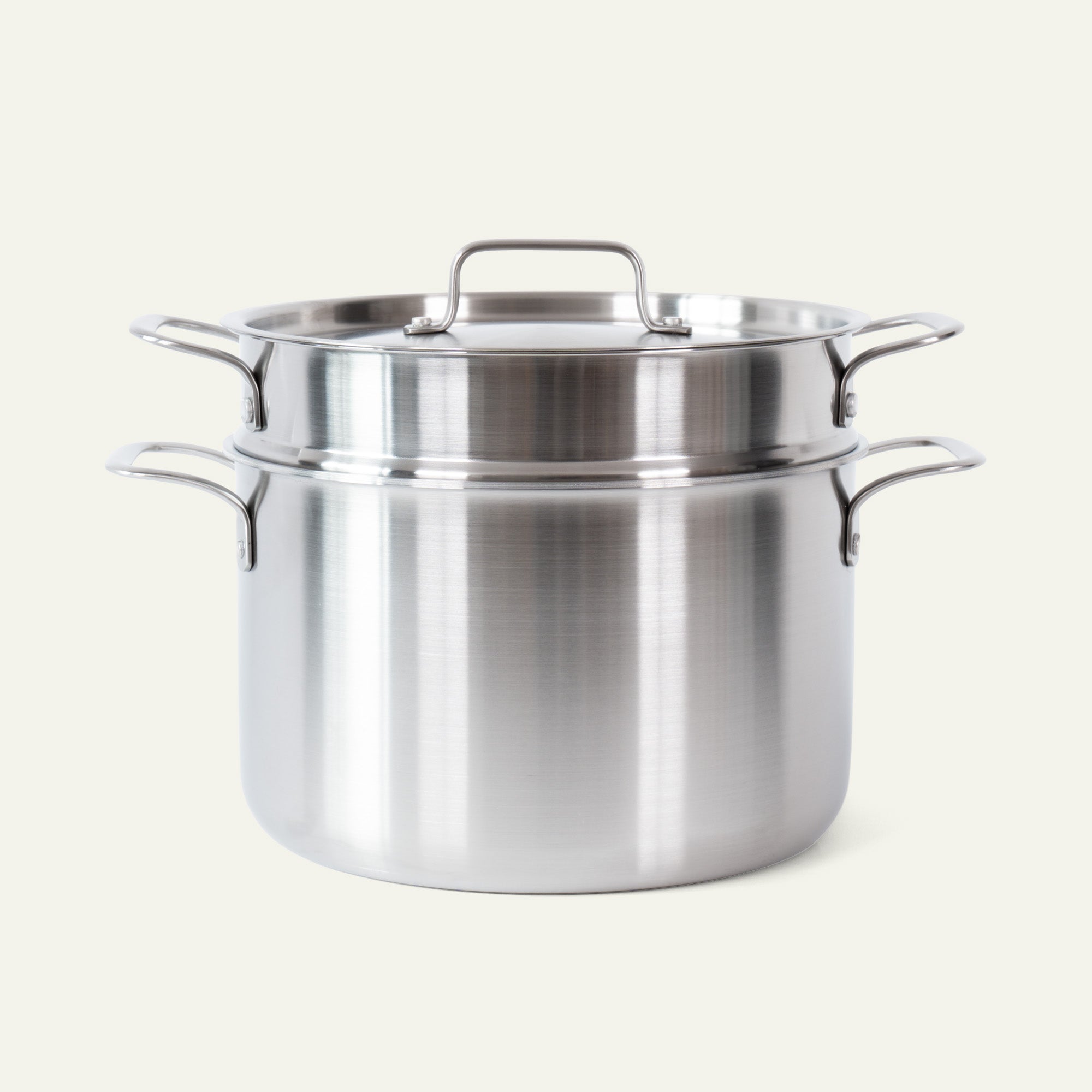 Mit 5-Lagen-Technologie erhalten Sie einen langlebigen Topf, der ein Leben lang hält und alle Vorteile von Edelstahl bietet: pflegeleicht, für alle Kocharten geeignet und frei von PFAS oder anderen schädlichen Beschichtungen, die sich mit der Zeit ablösen und in Ihre Lebensmittel gelangen.