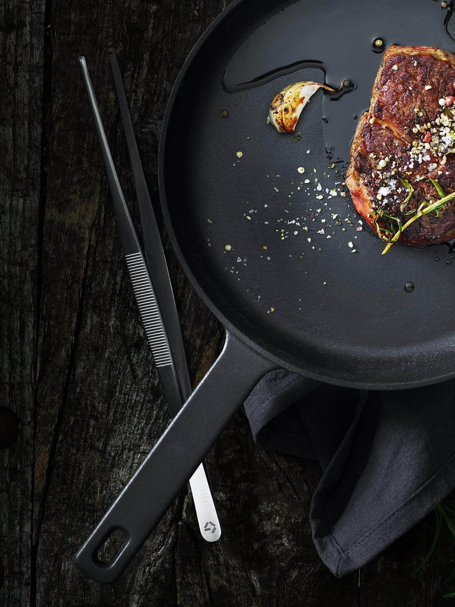 Die Küchenpinzette dient als präzise und handliche Verlängerung Ihres Arms. Die Pinzette verfügt über praktische Rillen, die einen sicheren Griff bieten.