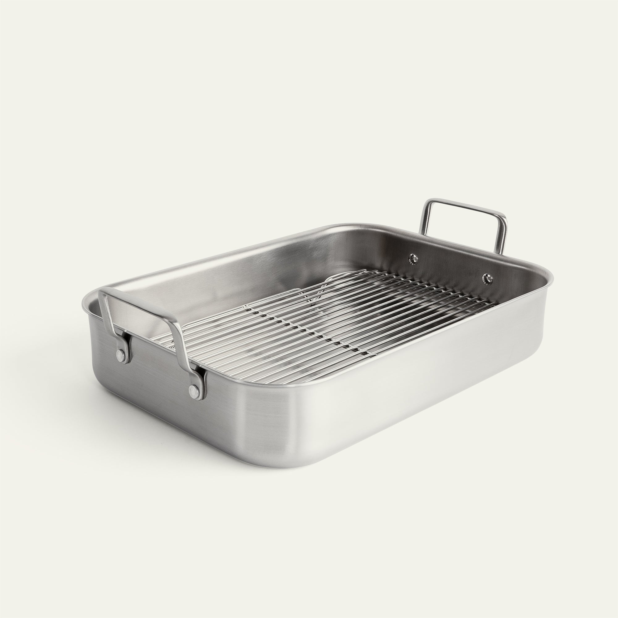 Das Gestell ist so konzipiert, dass es perfekt in die Bratpfanne passt, so dass Sie einen Braten, eine ganze Ente oder ein Hähnchen darauf legen können, während der Bratensaft heruntertropft und die Grundlage für eine Sauce bildet. Dank der robusten Konstruktion des Gestells müssen Sie sich keine Sorgen machen, dass es sich unter dem Gewicht des Bratguts verbiegt.