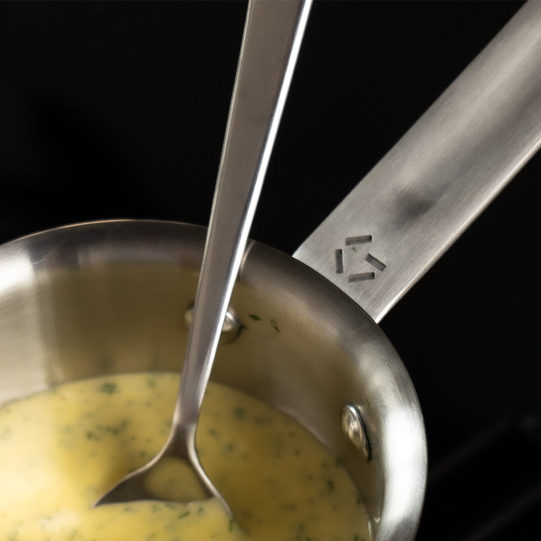 Dank des Aluminiumkerns, der eine hervorragende Wärmeleitfähigkeit aufweist, können Sie die Temperatur schnell regulieren. Anders als bei Kochgeschirr mit aufgesetztem Sandwichboden breitet sich die Hitze auf natürliche Weise an den Seiten des Topfes aus, da der gesamte Topf aus 5 Lagen besteht - perfekt zum gleichmäßigen Erhitzen von Saucen.