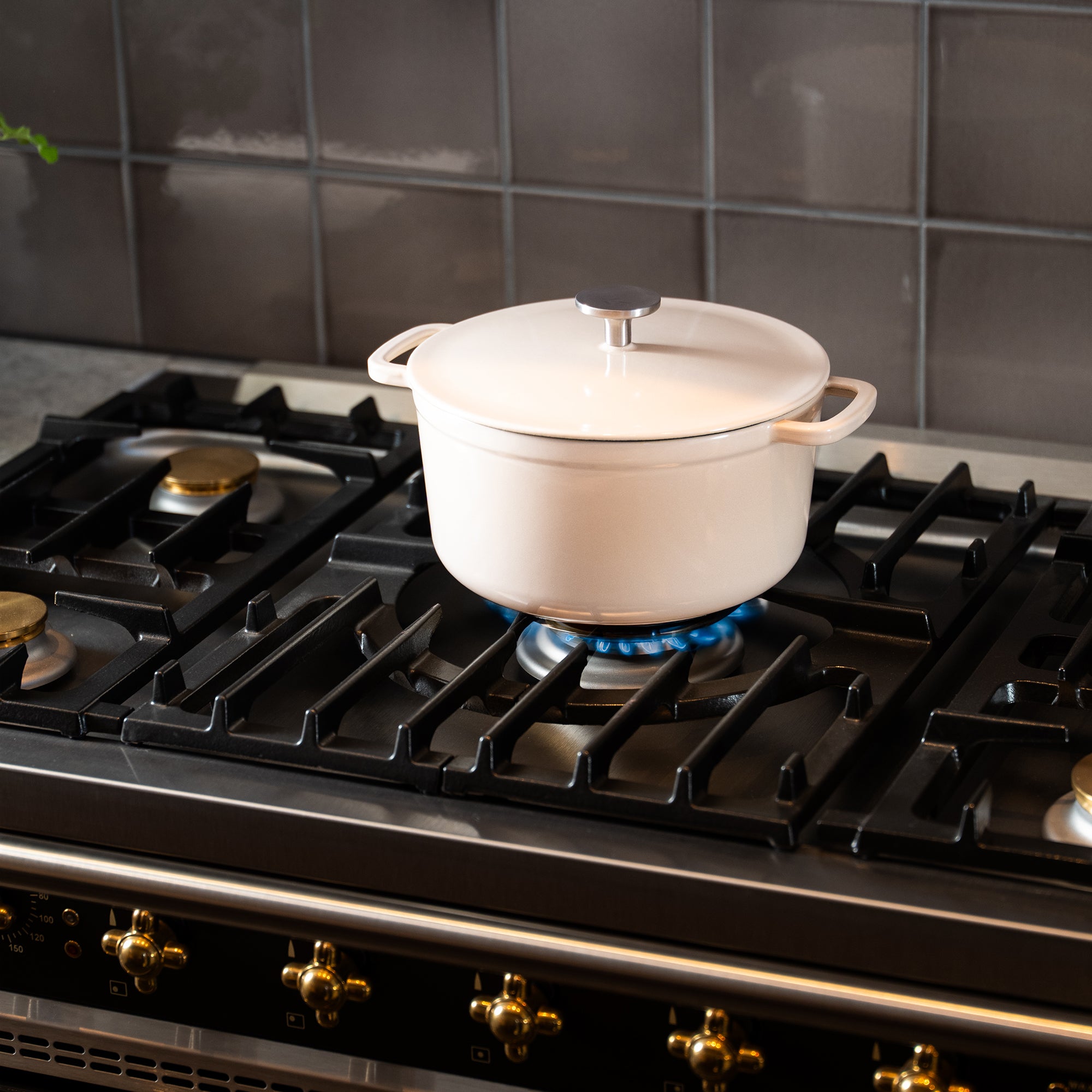 The craftsmanship is French, but the design is Danish and minimalist. The tight-fitting lid has condensation grooves and an ergonomic stainless steel handle that is easy to handle, even with oven gloves, when removing a piping hot stock pot from the oven. The cast iron casserole comes in three colours – all of which are an aesthetic addition to any kitchen that you will never tire of looking at. Enjoy a new addition to your kitchen with a history of craftsmanship behind it.