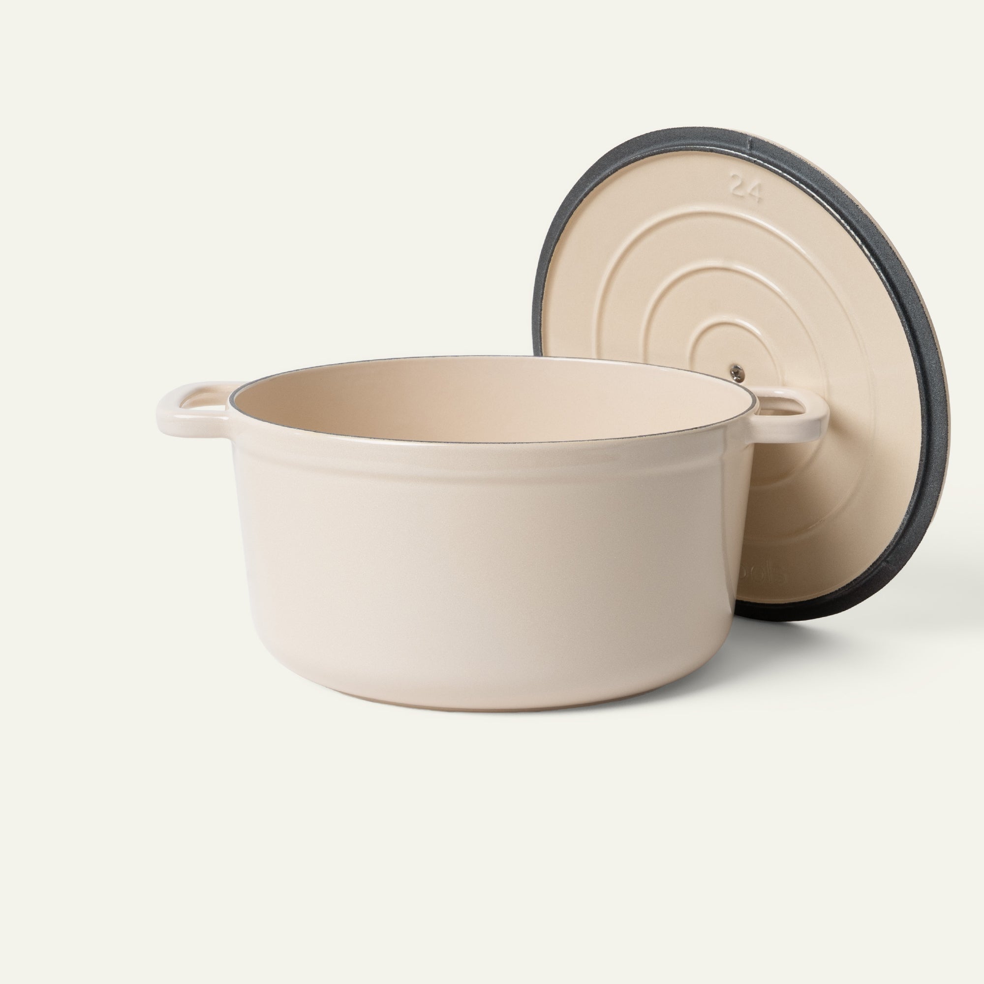 You only buy the right cast iron casserole once in a lifetime, which is why we have not compromised on production, materials or design. Our casserole is produced by a French company that has been creating top-quality cast iron products since the 1920s. Here, each casserole is cast in an individual sand mould made from up to 80% recycled materials. The enameling is done by hand by experienced experts to ensure that the surface is as strong as possible. It is in the quality of the enamel that the difference between cast iron casseroles is most evident — not tomorrow, but many years from now, when the casserole still delivers perfect results, time after time.