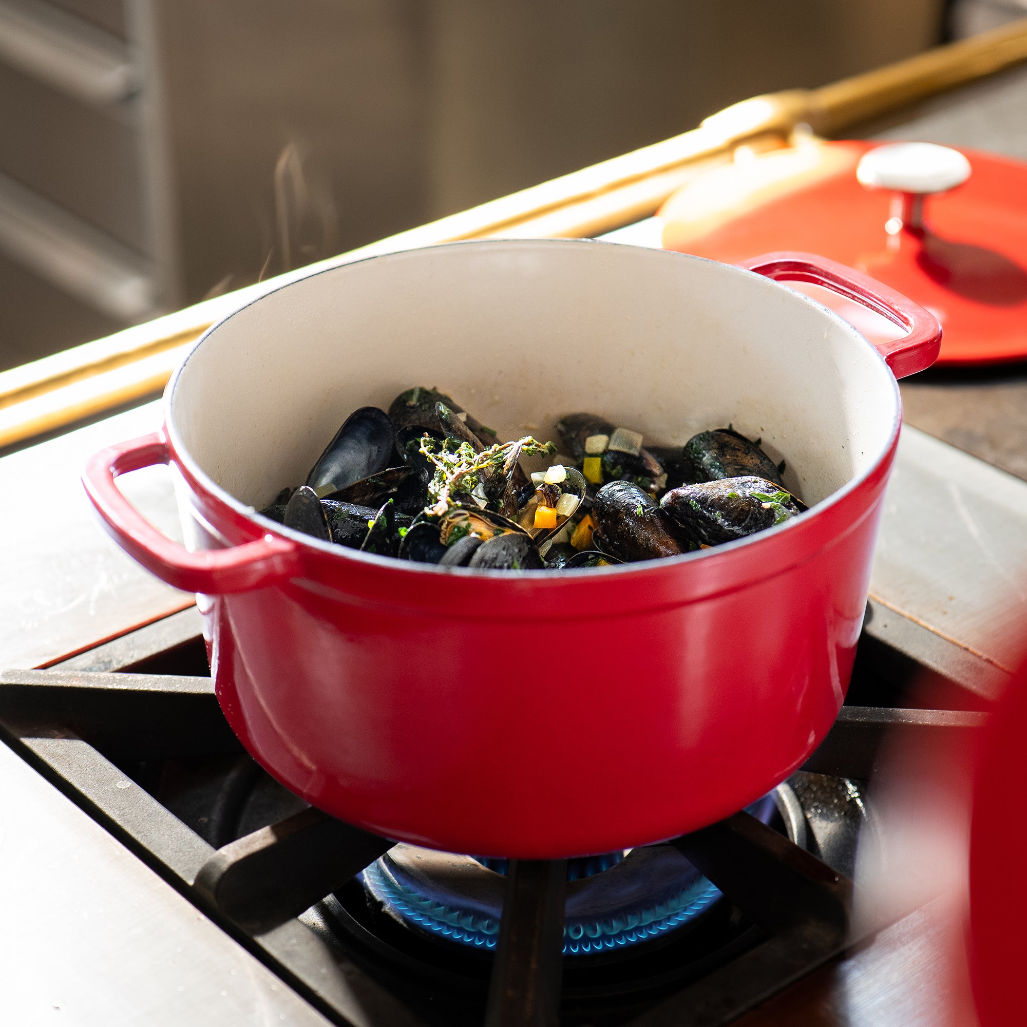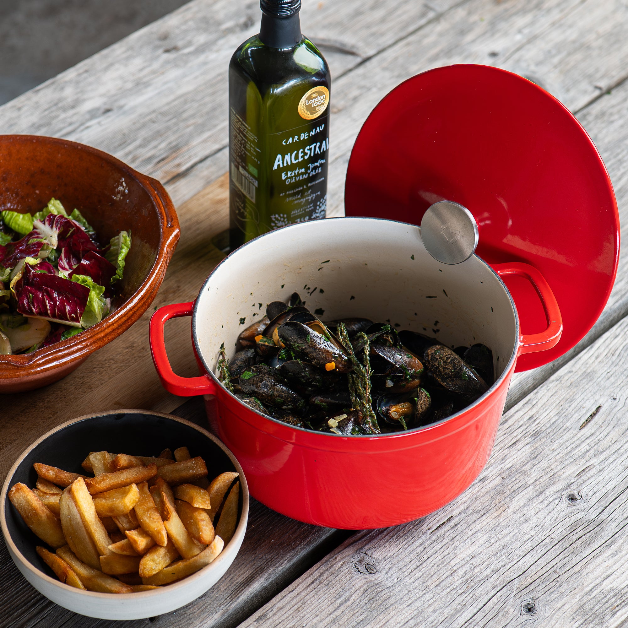 In collaboration with CARDENAU, we have launched a color that represents them, their approach to cooking, and their French roots. The result is a beautiful cast iron casserole in CARDENAU red, available in limited quantities. Cast iron casseroles have been the foundation of both private and professional kitchens for many decades. That is why we have developed an enameled cast iron casserole that combines tradition and function in a timeless kitchen classic. Create wonderful dining experiences with flavorful boeuf bourguignon, chicken danoise, or freshly baked, juicy casserole bread. This is the pot you place in the middle of the table when the family gathers—both now and for many years to come.