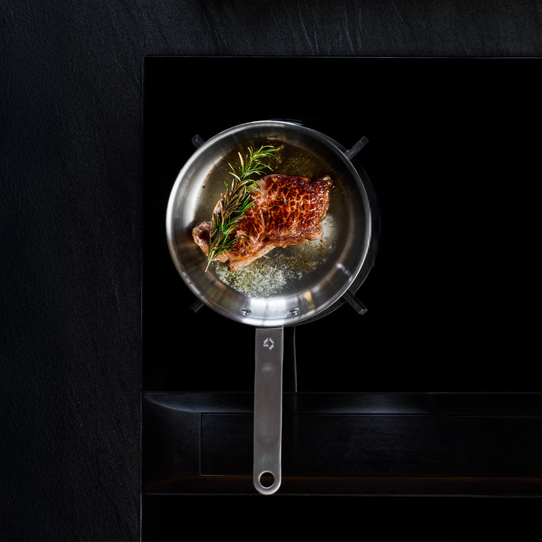With 5-ply construction, you get an indestructible frying pan that lasts a lifetime, along with all the benefits of stainless steel: low maintenance, suitable for all types of cooking, and completely free from PFAS and other harmful coatings that wear off over time and end up in your food.