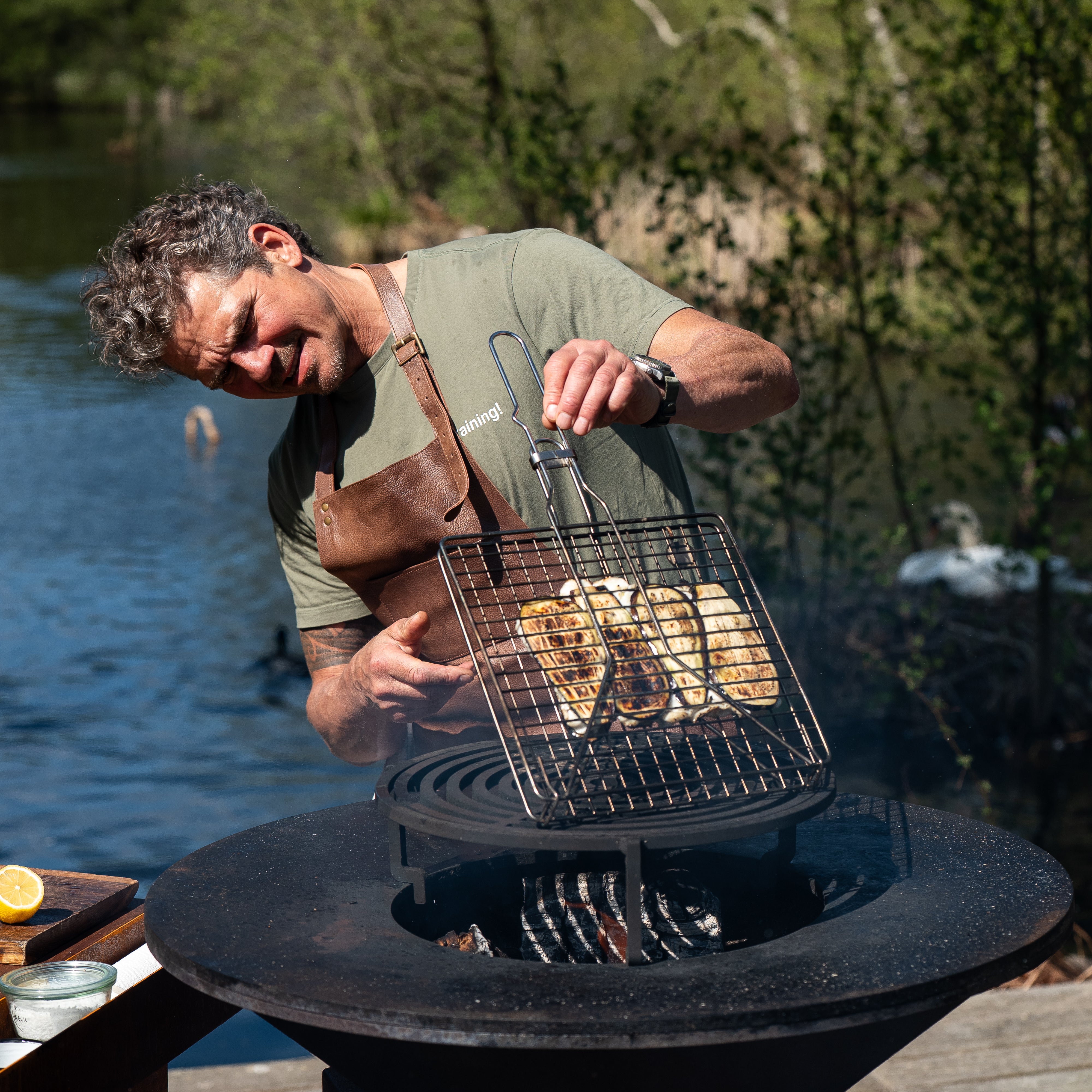 The grill basket is easy to use, easy to pack and hard to do without if you love cooking outdoors. Imagine you've just landed a fish and you're cleaning it in the cold water on the shore. You find some firewood nearby, light a fire and cook the fish right away: Place the fish in the basket and place it directly over the flames for a crispy skin and juicy interior. It doesn't get any fresher than that.