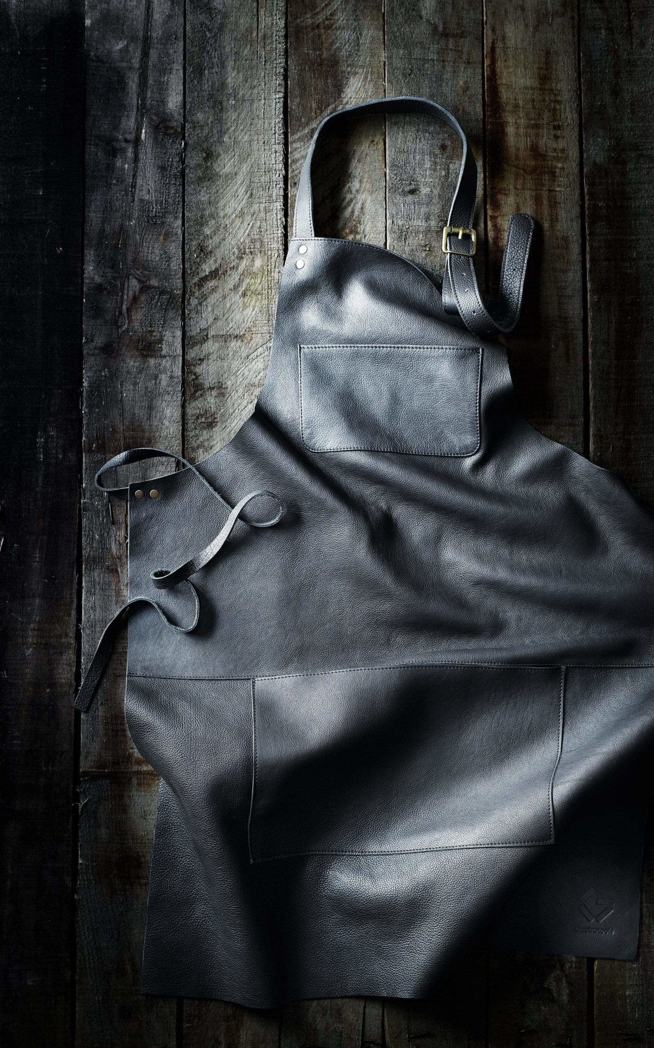 • Handcrafted leather apron in 100% full grain cow leather