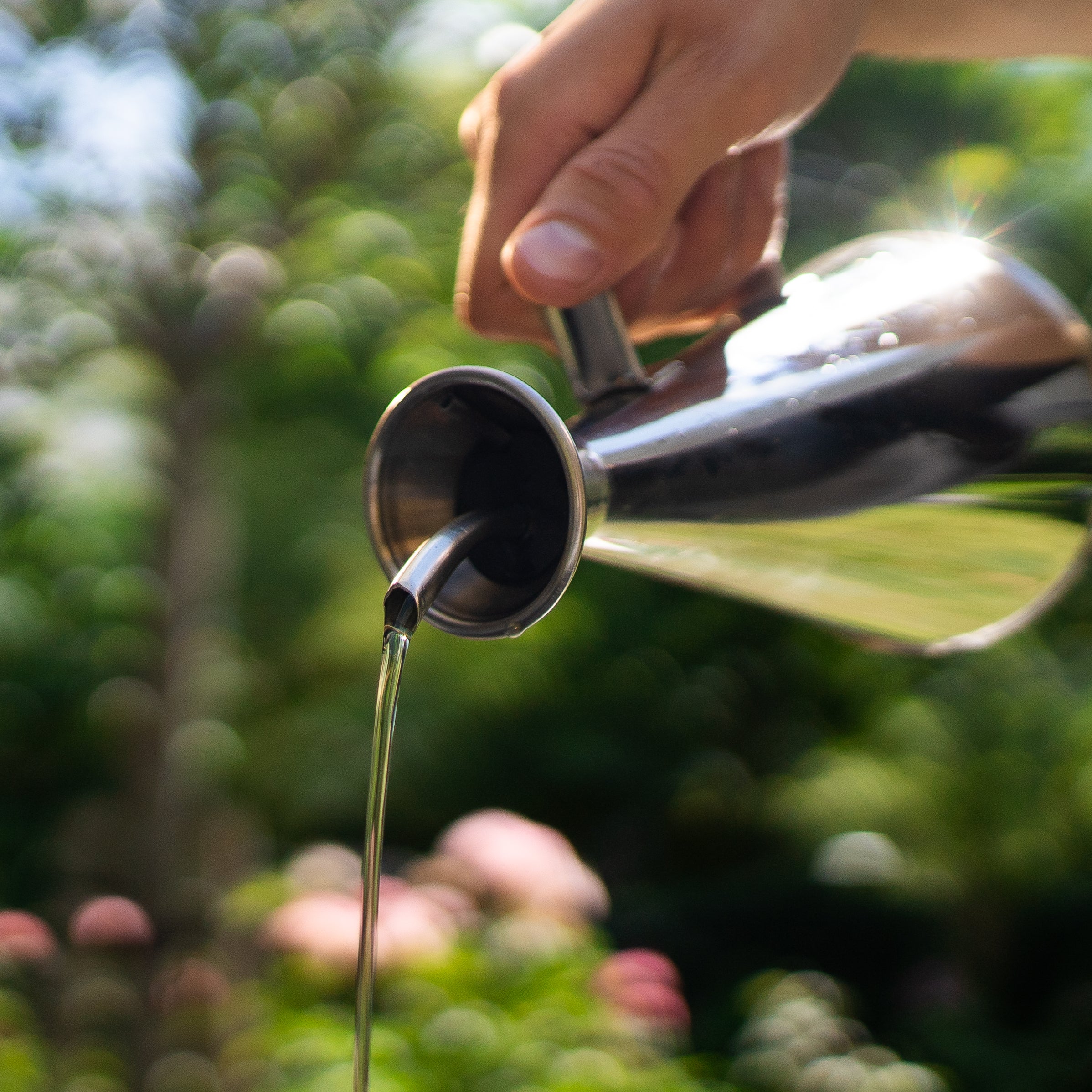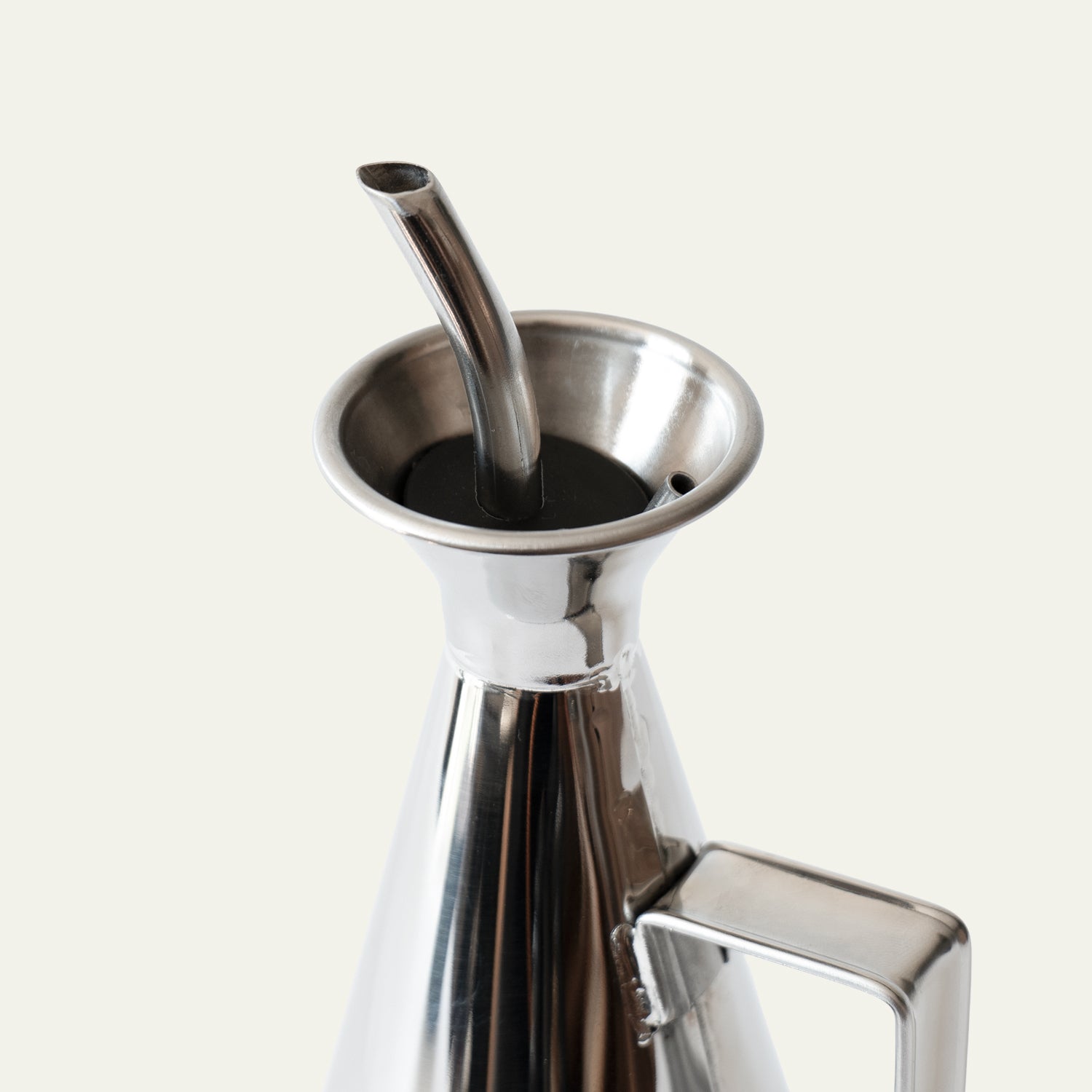 Upgrade your kitchen with a beautiful handmade oil bottle, created in Portugal with respect for traditional craftsmanship. The stainless steel oil bottle protects your oil from light and ensures it stays fresh for longer. With a drip-free pouring spout and an air tube integrated into the rim, you get precise, even dispensing - and no more greasy fingers after removing a stopper or unscrewing a lid.
