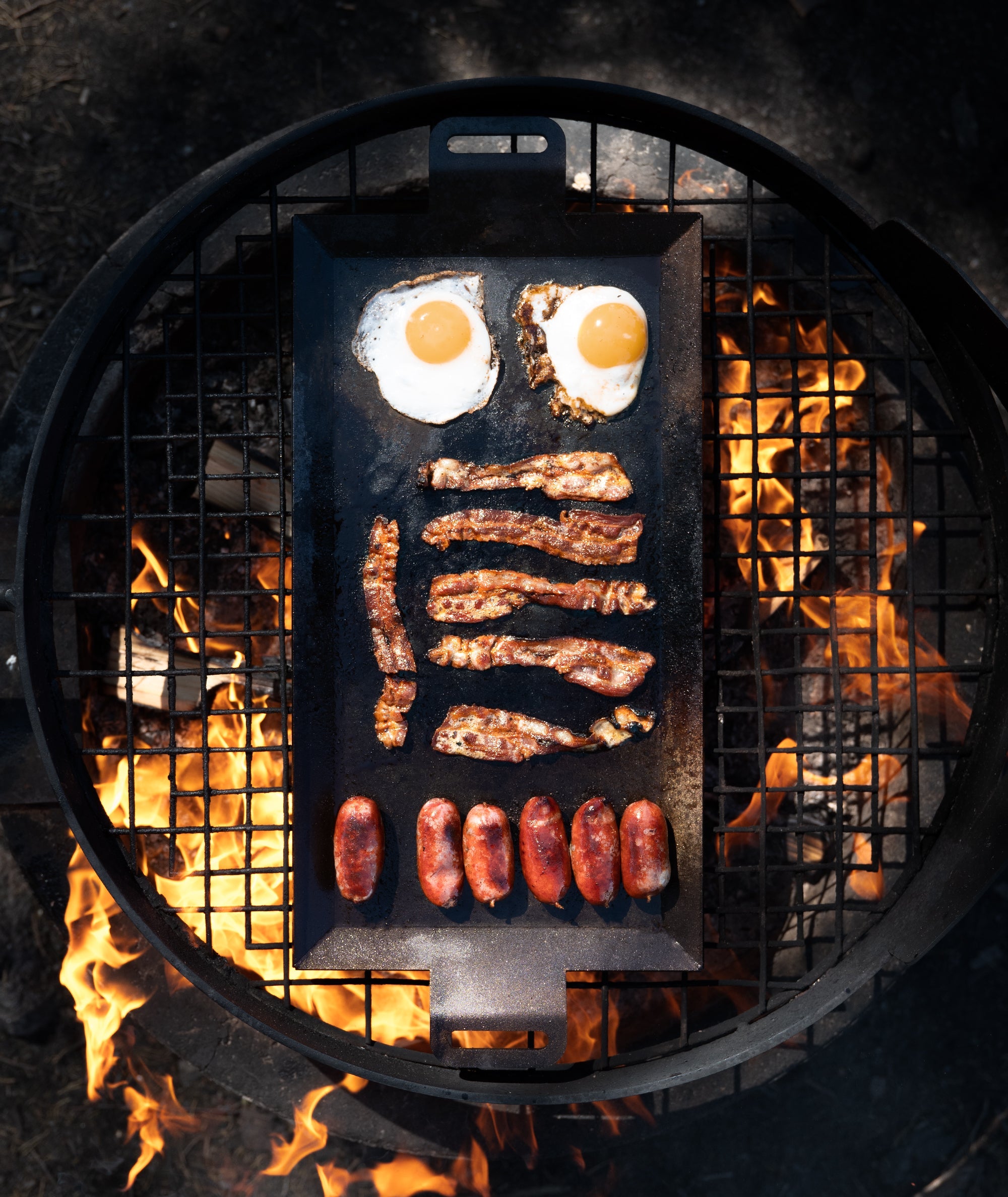 The cooking plate is lightweight enough for easy transfer from stovetop to grill, and it fits across two burners, allowing for dual heating zones. Inspired by professional kitchens, unlike a ridged grill pan, it offers maximum cooking surface and contact - ensuring perfect crispy crusts on your smashburgers, crepes, or family breakfast.